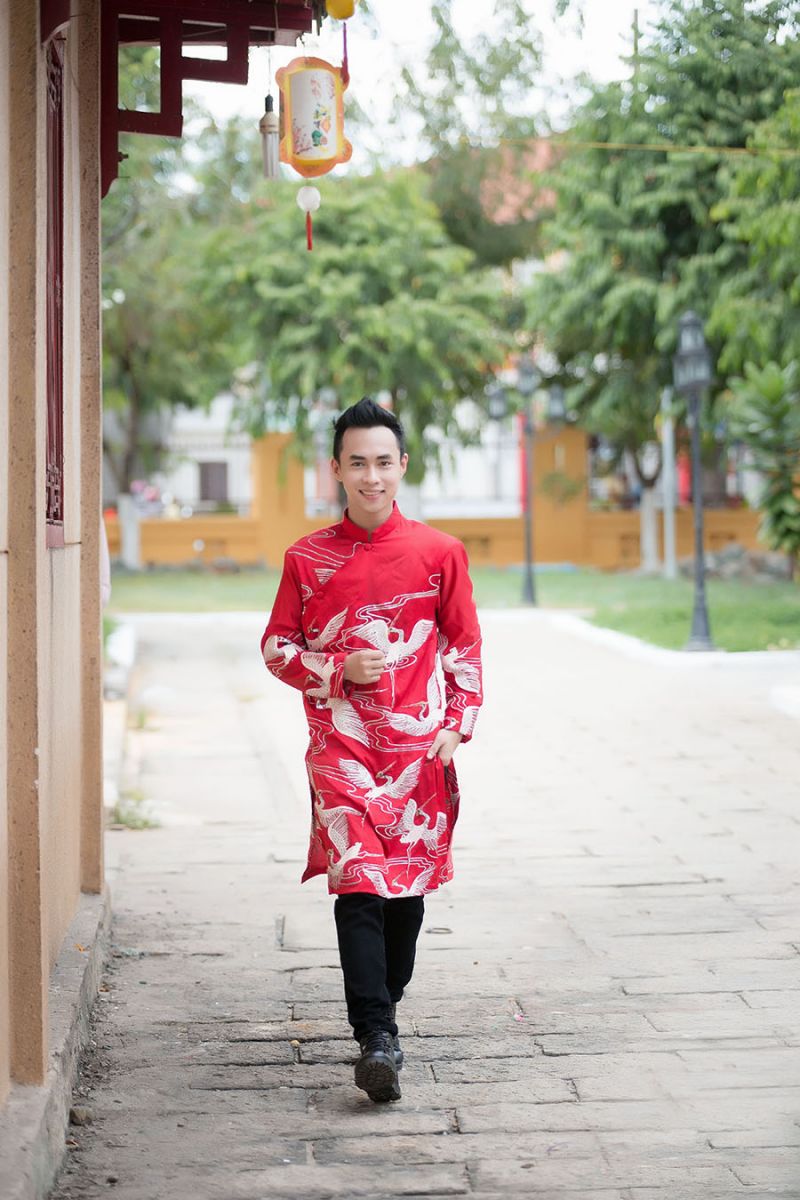 Đinh Quốc Anh diện áo dài xuống phố du Xuân