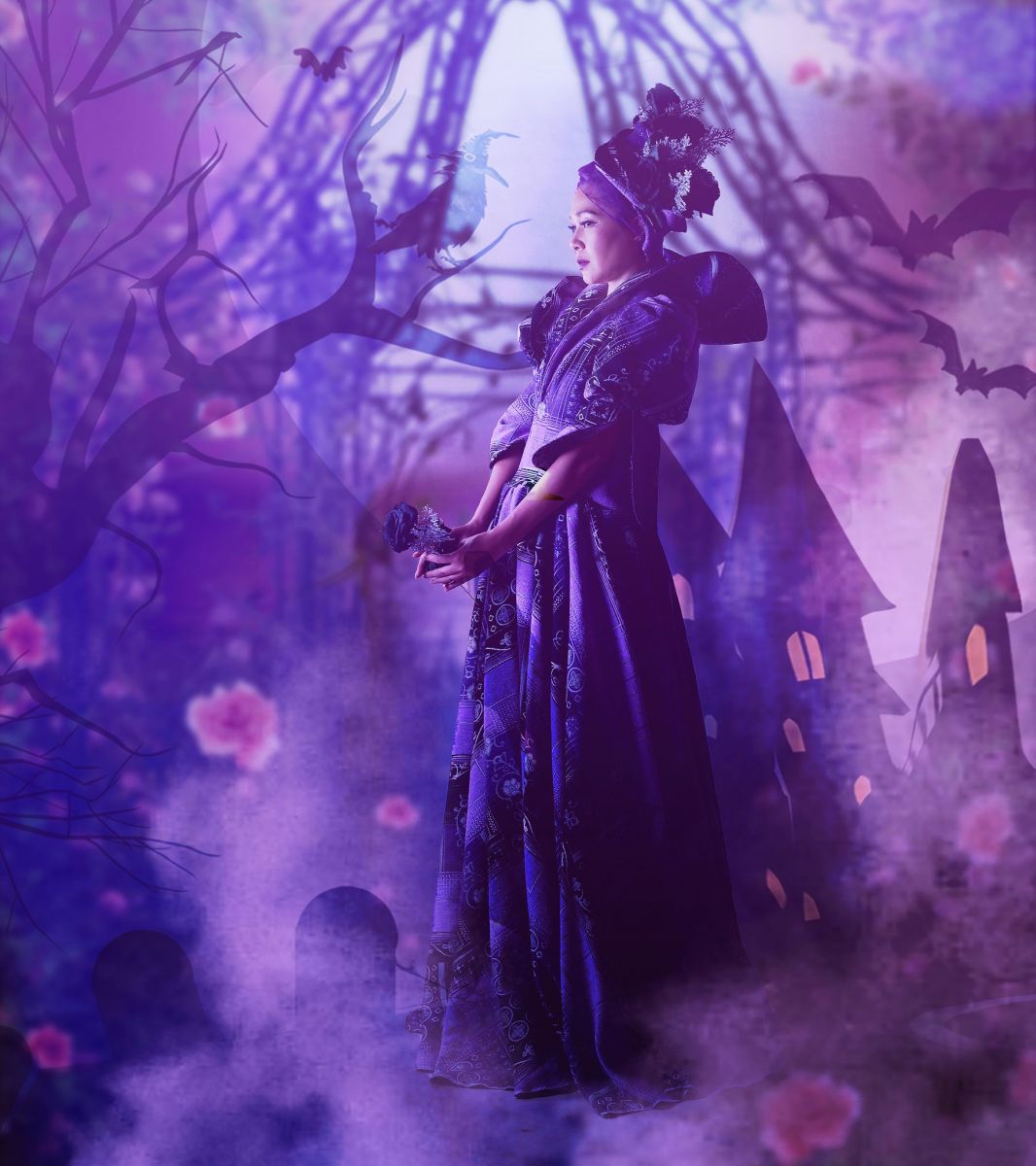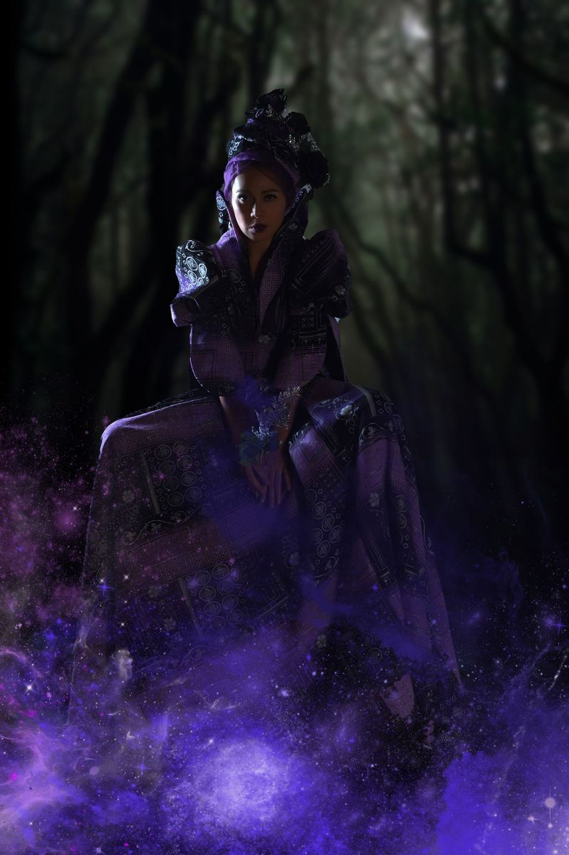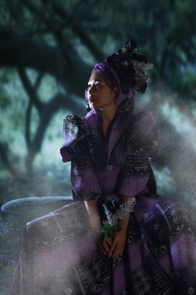 Cùng nhìn ngắm Một Đinh Y nhung đầy bí ẩn và ma mị trong bộ ảnh Halloween ,với trang phục sắc tím huyền ảo của nhà thiết kế Nguyễn Dũng