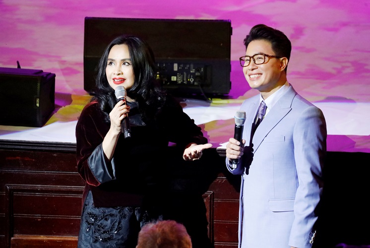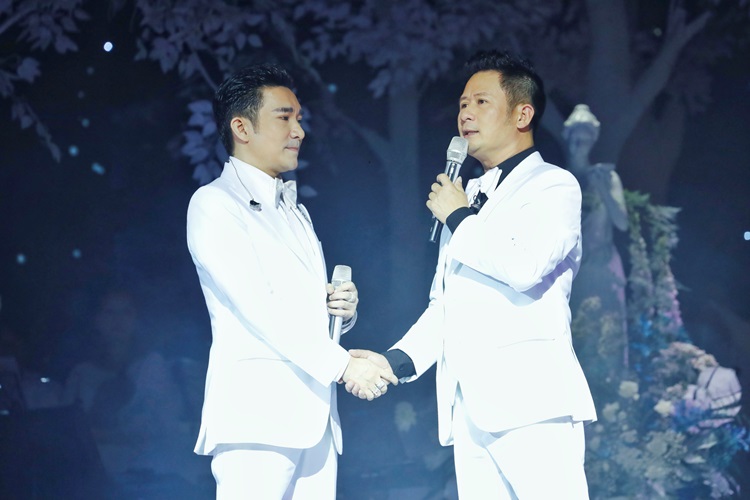 Quang Hà, Lệ Quyên song ca hai ca khúc “Vì sao em ơi”, “Vì sao không thể”. Trên sân khấu lãng mạn, đôi bạn thân hòa giọng hài hòa, xử lý tinh tế từng câu chữ khiến khán giả say sưa, xuýt xoa.