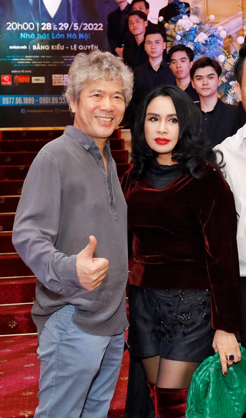 Tại thảm đỏ chương trình, Diva Thanh Lam và bạn trai bác sĩ nhận được sự quan tâm của khán giả, ống kính truyền thông khi xuất hiện tình tứ, đến chúc mừng đàn em Quang Hà.
