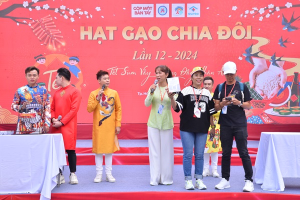 Sáng 28-1, Hội Phòng chống HIV/AIDS TP.HCM, Chương trình Góp Một Bàn Tay, Công ty TNHH Xã hội Bầu Trời Xanh và Phòng khám Nhà Mình phối hợp tổ chức chương trình Hạt gạo chia đôi lần 12 năm 2024 với chủ đề “Tết sum vầy - Đong đầy nhân ái”.