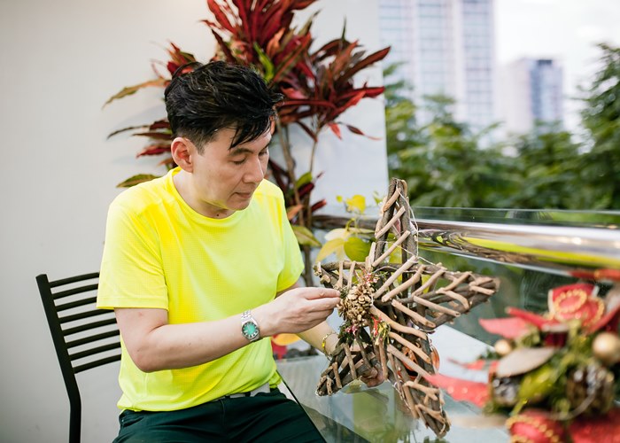 Nam ca sỹ dành thời gian chăm chút nhiều góc nhỏ trên sân thượng để mang thêm chút không khí Noel tràn vào nhà.