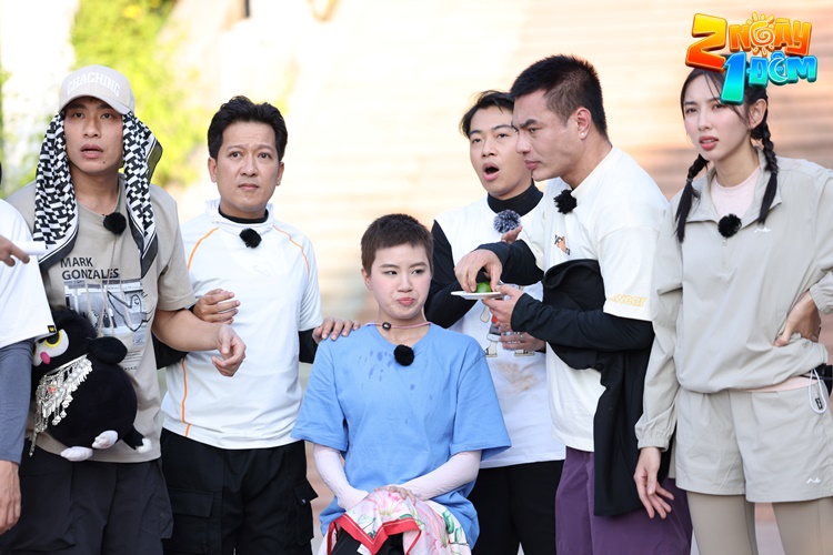 Trong thử thách “Nhảy Sạp,” Trường Giang một lần nữa chứng minh khả năng dẫn dắt khéo léo khi cùng Dương Lâm bày trò chơi xấu đối thủ Kiều Minh Tuấn - HIEUTHUHAI. Pha phối hợp tưởng chừng hoàn hảo đã nhanh chóng ‘phản tác dụng’ khi Kiều Minh Tuấn bất ngờ ‘tác động vật lý’ khiến Dương Lâm hoảng hốt đến mức phải phân trần “Anh Giang xúi em mà!” còn “Mười Khó” lại giả vờ không biết sự tình.