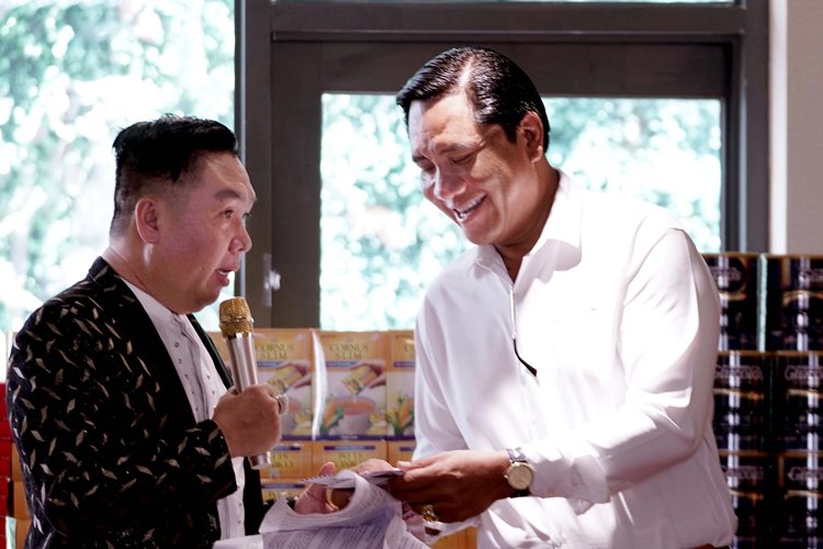 Trong buổi trao quà còn có sự hiện diện của một nhóm doanh nhân kinh doanh thuốc đông y do nhà biên kịch Thiếu Hoàng bắt nhịp cầu. Anh Quốc dược sĩ từ phòng đông y cho biết: " Người cao tuổi chắc thế nào cũng đau lưng, mỏi khớp. vậy là doanh nghiệp của anh ủng hộ một số thuốc xương khớp. Doanh nghiệp khác ủng hộ dầu gió, thuốc dán... Anh Nghĩa tặng sữa, riêng Công ty Six Coffee đem hàng trăm phần quà đến tặng như thể hiện tấm lòng ngưỡng mộ những nghệ sĩ cả đời đã cống hiến cho nghệ thuật. Họ nói, chúng tôi chỉ mới biết đến chương trình Nghĩa tình nghệ sĩ do Công ty 3D HUB tổ chức. Qua sự giới thiệu của anh Hai Hoàng và nhà báo Lữ Đắc Long chúng tôi liền tham gia, hy vọng thời gian tới khi nghệ sĩ cần, chúng tôi sẽ có mặt...".