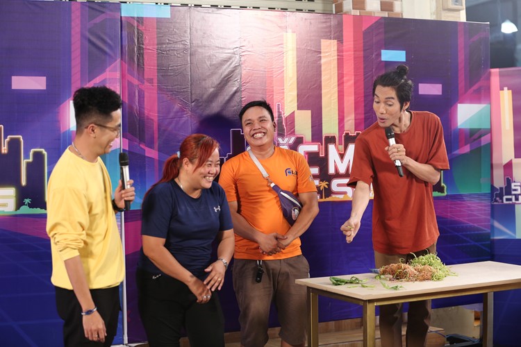 Trong khi đó, Hoàng Rapper liên tục gạ hỏi về chuyện tình cảm, Dương Thanh Vàng “nhắc nhở” nam MC đừng tập trung vào người yêu của mình nữa mà hãy tiếp tục giới thiệu món thức uống đầy dinh dưỡng này đến với khán giả.