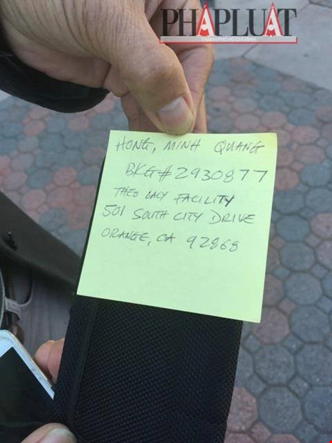 Địa chỉ cảnh sát trại giam ghi để chuyển đồ vào cho Minh Béo. Hình: Trung Dương