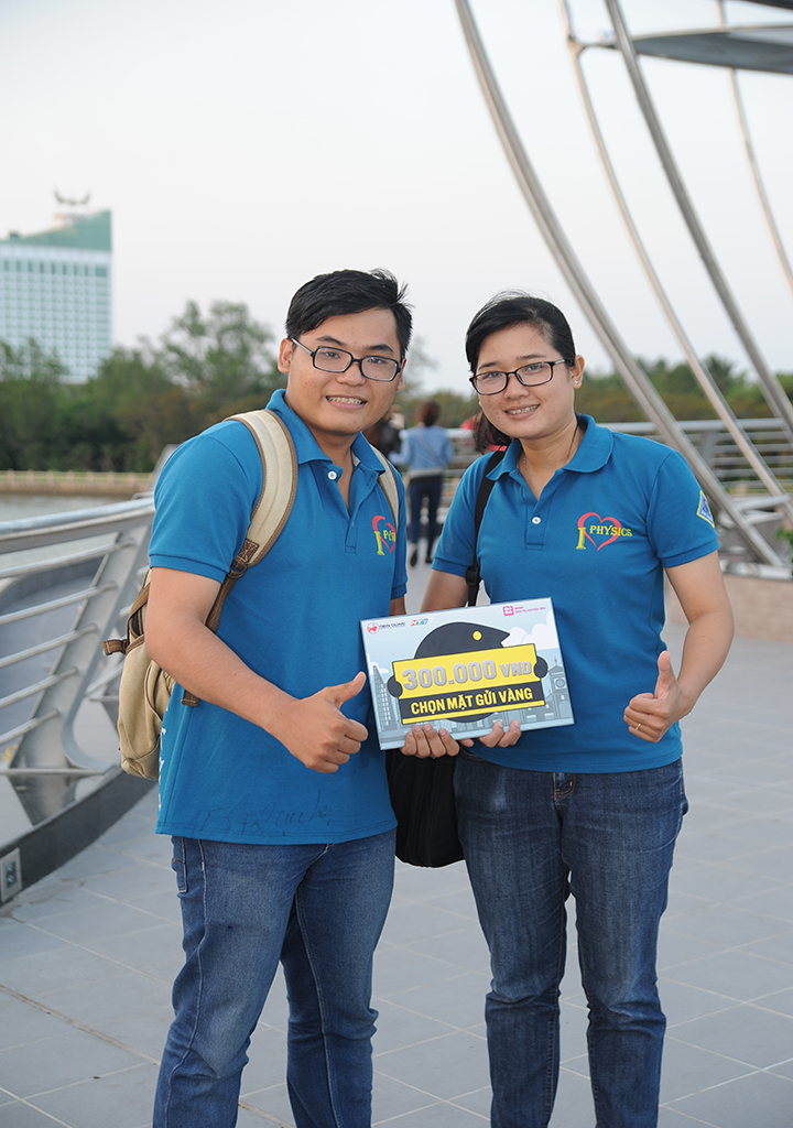 2 bạn sinh viên cùng khoa Nhật Huy và Anh Thu đẫ hỗ trợ thành công giúp Mỹ và Duy giành được phần thưởng trị giá 5 triệu đồng.