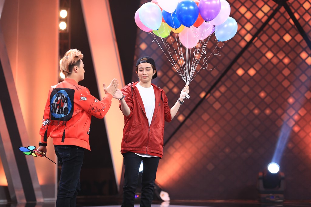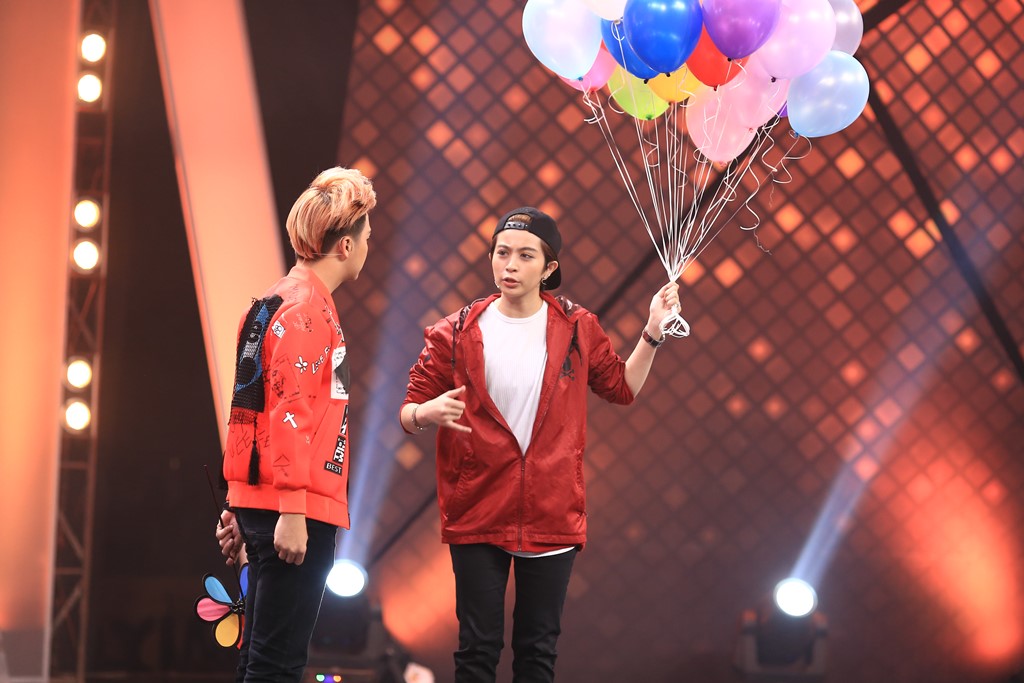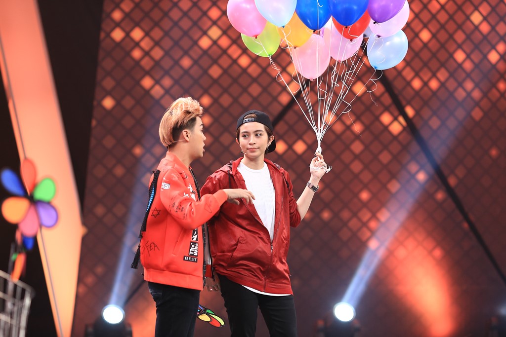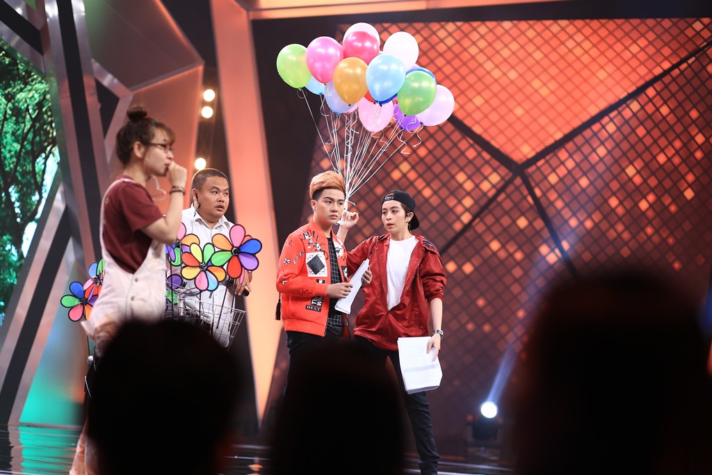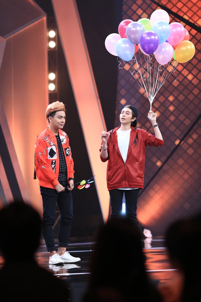 Hóa thân thành cô nàng bán bong bóng và anh chàng rao chong chóng, Gil Lê và Duy Khánh hợp tác “ăn rơ” mang lại nhiều tiếng cười cho người xem thông qua những màn tung hứng hài hước của mình.