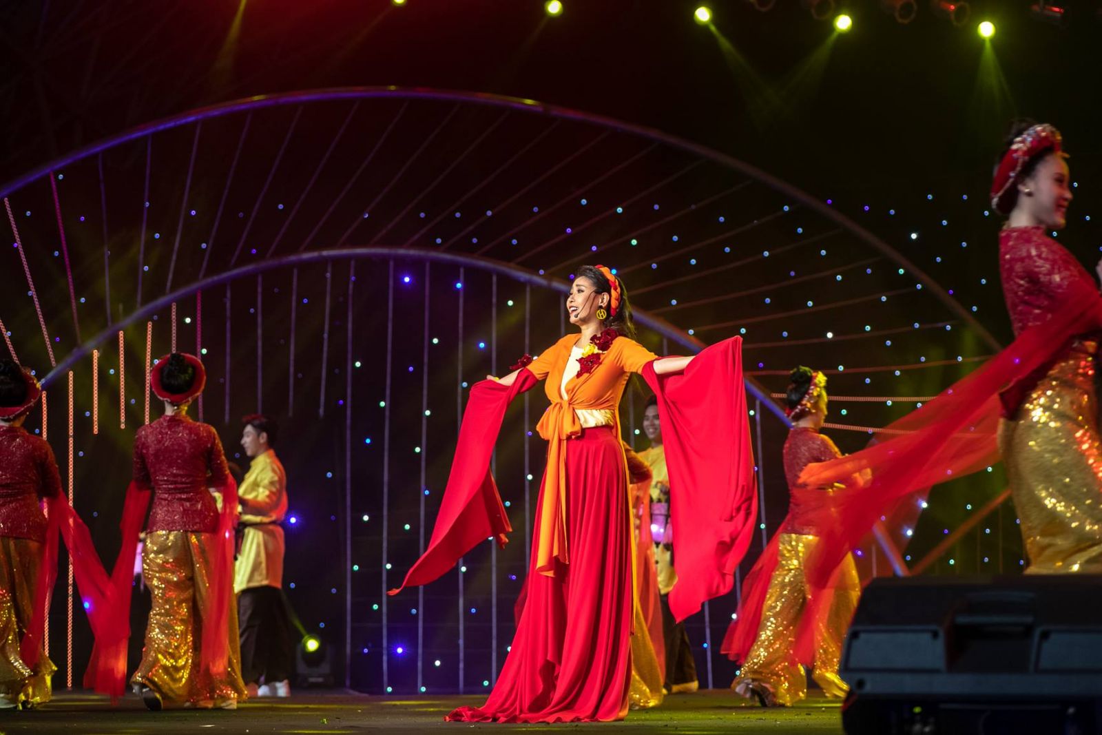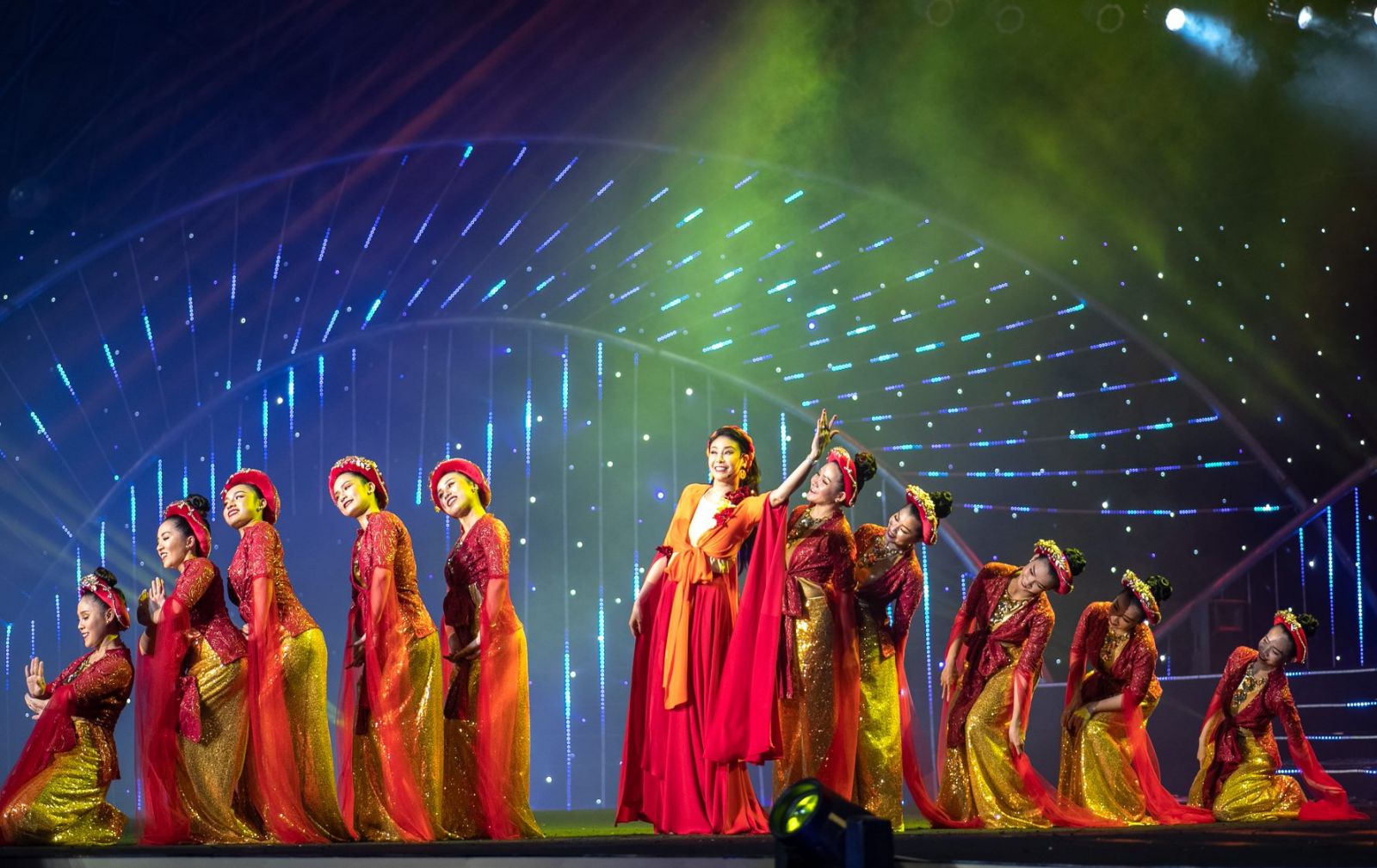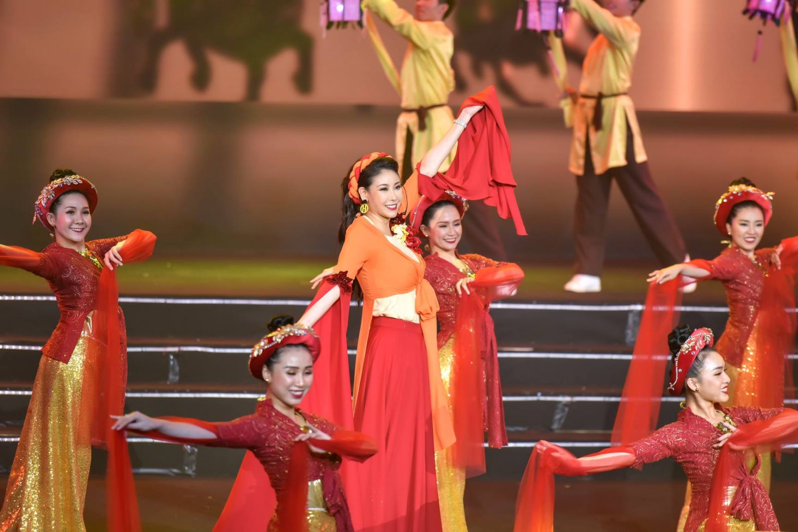 Hà Kiều Anh mặc áo tứ thân, biểu diễn nhân dịp hội ngộ các Hoa hậu, Á hậu