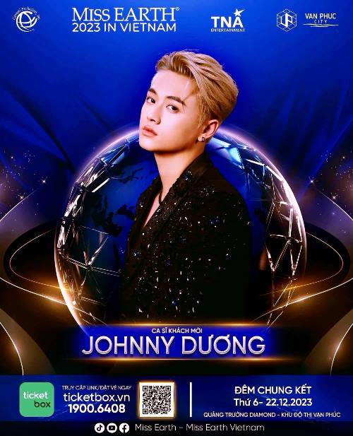 Ca sĩ trẻ Johnny Dương là mảnh ghép tiếp theo của dàn nghệ sĩ trình diễn trong chung kết Miss Earth 2023. Anh sinh ra và lớn lên tại Hoa Kỳ, hiện là một ngôi sao triển vọng với các vai trò ca sĩ, diễn viên và huấn luyện viên vũ đạo nổi tiếng, từng giành được nhiều giải thưởng quốc tế. Với đam mê sâu sắc với âm nhạc và điện ảnh, anh hiện hướng tới tham gia vào các hoạt động văn hóa và nghệ thuật tại Việt Nam.