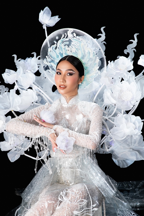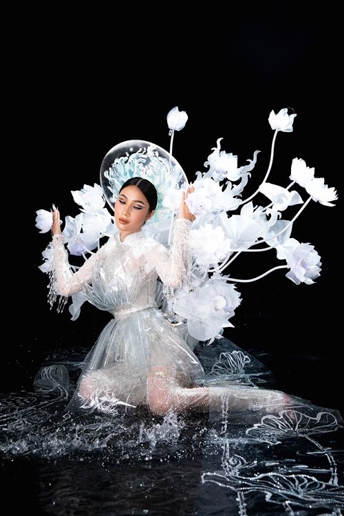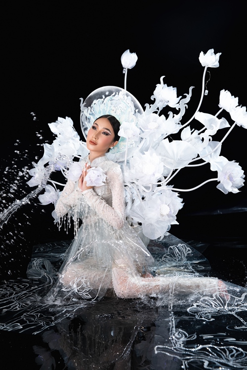 Bạch Liên Vũ Thủy là bộ sắc phục được ấp ủ và khai sinh dưới bàn tay của NTK Lê Thắng. Thiết kế được lấy cảm hứng từ hình ảnh hoa sen trắng, mang vẻ đẹp thuần khiết, thanh tao, nền nã, đại diện cho hình ảnh của người phụ nữ. Ngoài ra, bộ trang phục còn mang ý nghĩa tôn vinh tinh thần vượt khó vươn lên, hướng đến một tương lai tươi sáng của tập thể người Việt Nam. Bạch Liên Vũ Thủy được tạo hình từ áo dài truyền thống và cách tân tinh tế để tạo nên sự độc đáo, mới mẻ nhưng vẫn giữ được nét đẹp vốn có của một bộ quốc phục. Khoác lên mình trang phục ẩn dụ cho nét đẹp của con người đất Việt, Ngọc Tuyết mang lại một góc nhìn rất riêng biệt về bản thân và là sự đại diện cho hình mẫu người phụ nữ công dung ngôn hạnh, nhẹ nhàng nhưng mạnh mẽ, vươn mình từ bùn đen nhưng vẫn trắng trong, thuần khiết.