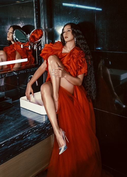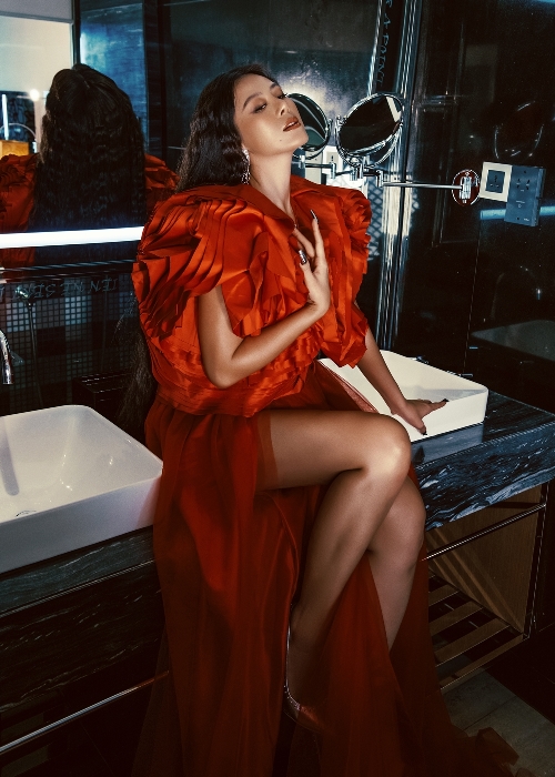 Trong bộ ảnh mới, Nam Thư gây ấn tượng bởi hình ảnh sang trọng, quyến rũ. Những tông màu sặc sỡ vốn kén người mặc như cam, đỏ, xanh… được người đẹp “cân” một cách dễ dàng. Những thiết kế cách xẻ sâu ở ngực, đùi… giúp tôn lên vóc dáng nóng bỏng mà Nam Thư tích cực tập luyện trong thời gian dài. Bên cạnh đó, cô chọn kiểu tóc uốn xoăn cầu kỳ để phù hợp với hình ảnh một cô gái bốc lửa và kiểu tóc tết đầy cá tính.