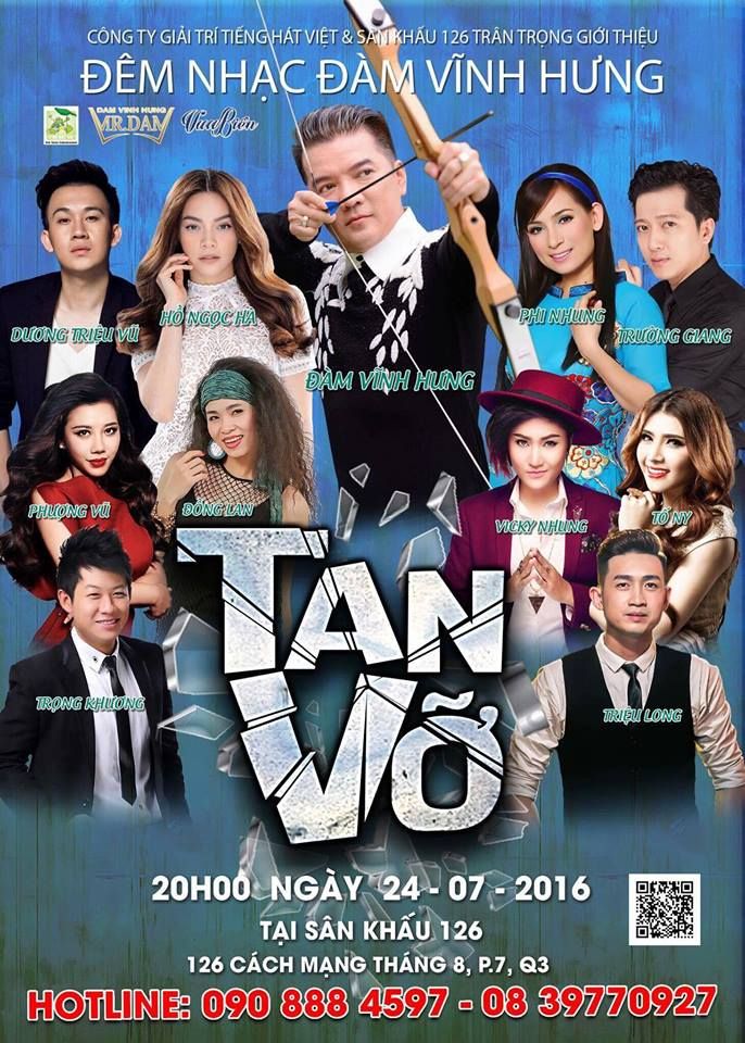 Vào lúc 20h ngày 24/07 tới đây, ca sĩ Đàm Vĩnh Hưng sẽ có đêm nhạc chủ đề “Tan Vỡ” quy tụ nhiều ngồi sao tại sân khấu 126.