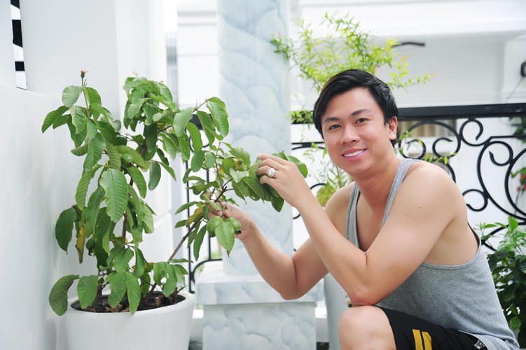 Không gian bên trong nhà Hồ Việt Trung có tông màu chủ đạo là trắng. Nội thất trong căn hộ cũng được anh chọn lựa kỹ càng để phù hợp với sở thích của mình. Trên sân thượng nhà có view đẹp, nơi anh trồng những cây ăn trái.