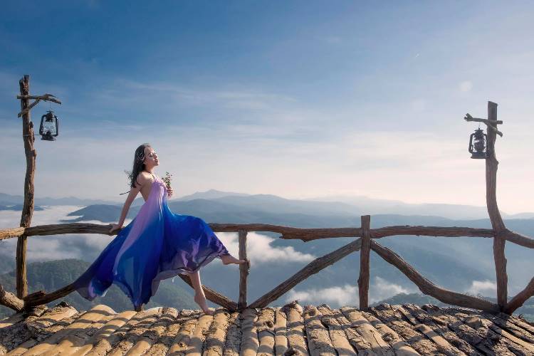 Có thể nói, bối cảnh Đà Lạt là một lựa chọn không thể phù hợp hơn để Huỳnh Thúy Anh khoe ra tất cả những vẻ đẹp thanh thoát và quyến rũ của mình, một hình ảnh cực kỳ cuốn hút nhưng cũng không kém phần ấn tượng giữa mây trời. Được biết, địa điểm xuất hiện trong bộ ảnh của nàng hậu chính là Cầu gỗ săn mây - một trong những địa điểm du lịch đang “hot hit” nhất nhì thành phố ngàn hoa.
