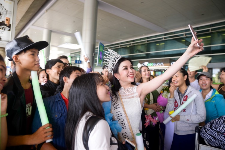 Hoa Hậu Janny Thủy Trần vui vẻ chụp ảnh selfie cùng fan hâm mộ