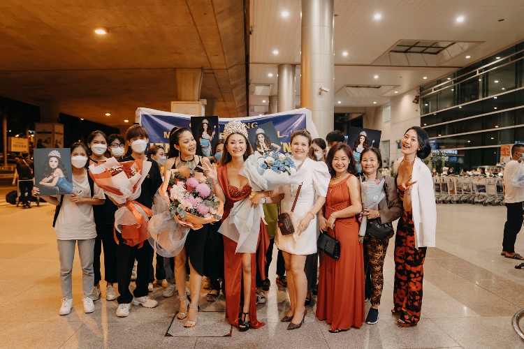 Hoa hậu sắc đẹp Việt Nam Quốc Tế 2021 Thủy Trương bị vây kín khi về Việt Nam
