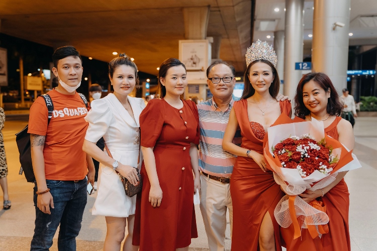 Hoa hậu Hoa hậu sắc đẹp Việt Nam Quốc Tế 2021 Thủy Trương đã bắt đầu hành trình làm thiện nguyện tại quê nhà. Vừa đến sân bay, cô được chào đón nồng nhiệt bởi người thân và fan hâm mộ.