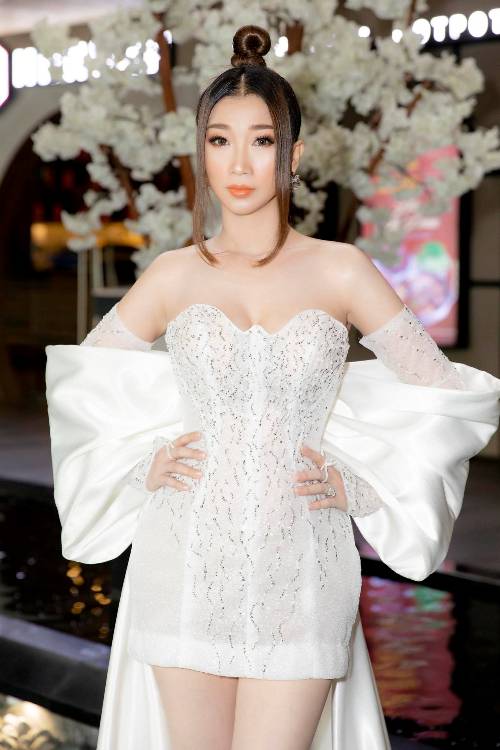 Thiết kế lấy tông màu trắng cùng những điểm nhấn nhẹ nhàng đã giúp hình ảnh của Ngọc Liên tăng thêm phần sang trọng và tinh tế. Vóc dáng chuẩn chỉnh từng cm được phô diễn triệt để với thiết kế đầm ôm sát sạt, Ngọc Liên còn khiến fan bất ngờ vì kiểu tóc búi cao đầy cá tính.