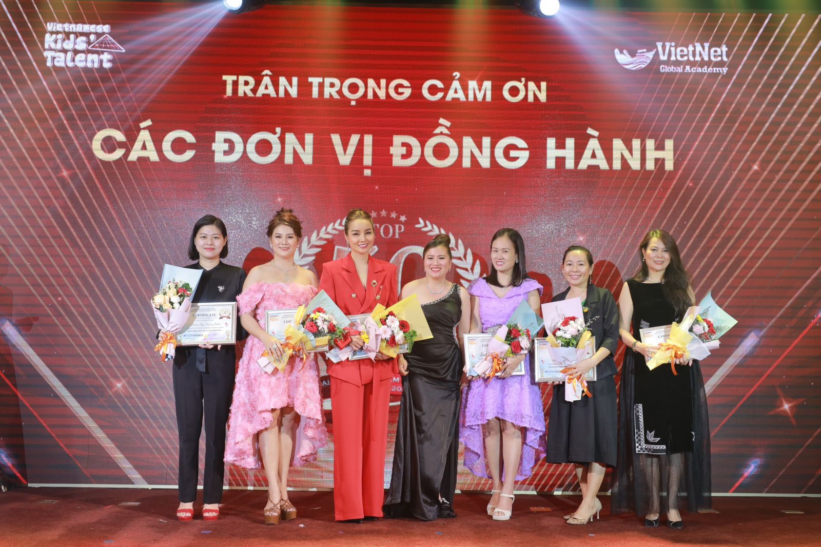 Hoa hậu Phương Triều tận tay trao những phần thưởng cho các tài năng trẻ trên sân khấu. Chiếc váy được cô đặt vội khi được mời đi sự kiện trao giải cho các bé, chắc rằng buổi tối hôm qua các bé đều ngắm nhìn cô Hoa hậu thật “đã mắt”.