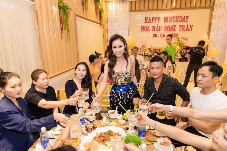 Và mỗi năm Hoa Hậu Rose Trân luôn tổ chức tiệc sinh nhật cho mình như một buổi họp mặt ấm áp bên người thân và bạn bè. Sinh nhật bao nhiêu tuổi không quan trọng, quan trọng là cô luôn chăm sóc bản thân để trẻ và đẹp hơn sau mỗi năm. Người đẹp trẻ trung, xinh xắn và khoe nét sang trọng của 1 người đẹp thành đạt trong bộ đầm của NTK Hoàng Tony. Bạn bè luôn khen cô mỗi ngày một trẻ ra, có người thi gọi cô là người đẹp vượt thời gian hoặc danh xưng người đẹp không tuổi.