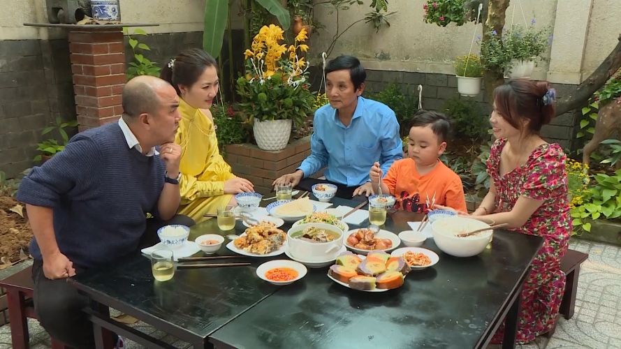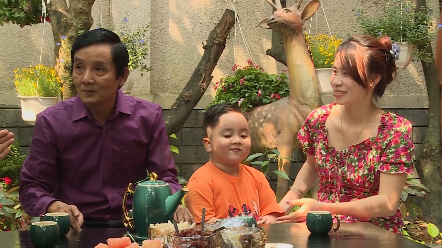 Quây quần bên mâm cơm những ngày đầu năm mới, người vợ trẻ bật mí họa sĩ Tiến tuy ít nói nhưng thường xuyên thể hiện những hành động ngọt ngào mỗi ngày. Cuối chương trình, ông đã cùng con trai chuẩn bị một món quà đặc biệt để tặng vợ. Thừa hưởng năng khiếu dị bẩm của cha, mới lên 4 nhưng quý tử nhà họa sĩ Tiến đã có thể “hai tay hai bút” vẽ nên một bức tranh với ý nghĩa vô cùng đặc biệt để dành tặng mẹ.