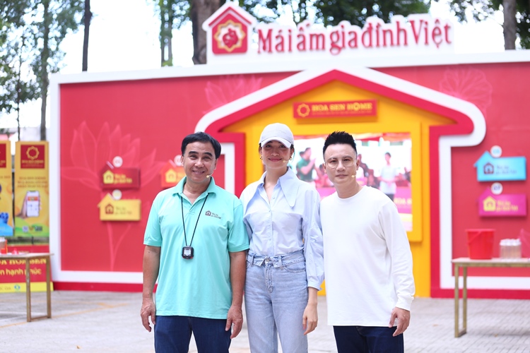 MC Quyền Linh, ca sĩ Hoàng Bách và Á hậu Lệ Hằng xót xa khi chứng kiến hoàn cảnh khó khăn của các em nhỏ mồ côi tại Mái ấm gia đình Việt.