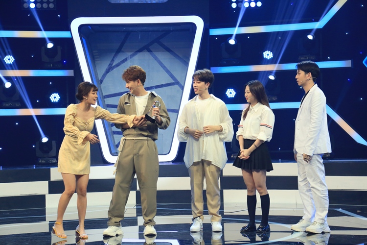 Không để hai đồng đội trả lời, Quốc Khánh liền cướp lời hai đồng đội, rồi tận dụng cơ hội tâng bốc bản thân: “Anh Huy à, từ nãy giờ em đã để ý rồi. Chương trình này mời toàn ca sĩ, riêng có mình em là diễn viên thôi. Nhưng em lại có mặt trong chương trình này, chứng tỏ giọng hát của em có một vị trí trong lòng khán giả”. Bắt bẻ lại những lời lươn lẹo của đàn anh, Ali Hoàng Dương yêu cầu nam diễn viên hát để chứng minh cho điều mình vừa nói. Ngay lúc này, Quốc Khánh sượng “chín mặt” vì bị làm khó, ngay sau đó lên tiếng từ chối: “Đây là gameshow, Khánh chỉ trình diễn thôi chứ không thể hát”.