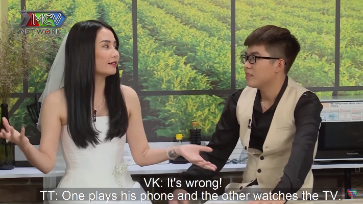 Thảo Vy thì lại thường xuyên trêu chồng, không ngại gọi anh là "chị gái" nơi đông người vì trước đây, cô từng nghi ngờ giới tính của Thiên Phúc. Tiếp lời vợ, Thiên Phúc kể anh cũng thường trang điểm để... đẹp hơn người khác khi đi đá banh. Hào hứng tham gia chủ đề, Thanh Trần cho biết ở nhà, thỉnh thoảng Khánh Đặng nhờ cô trang điểm cho anh giống con gái và mượn đầm của vợ mặc. Một điều hài hước là khi chồng đi khoe với mẹ ruột, bà lại rất thích.