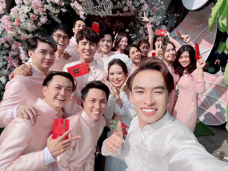 Xuất hiện trong dàn bê tráp là một số diễn viên bạn thân của Huỳnh Quý như Võ Tấn Phát, Hữu Đằng, Dương Gia Mỹ, Võ Điền Gia Huy, Thành Khôn,...tất cả đều tươi tắn trong áo dài truyền thống.