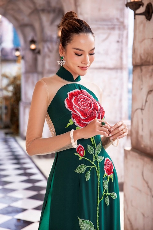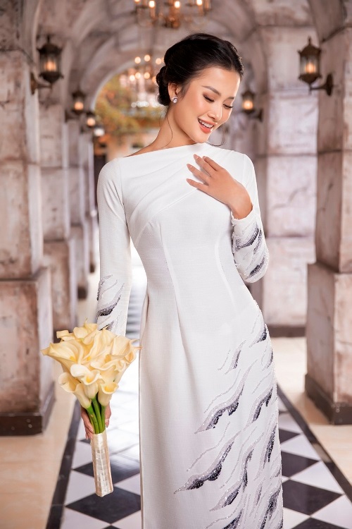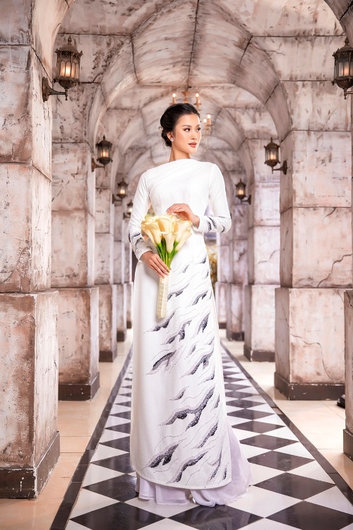 Khác với hình ảnh nóng bỏng, quyến rũ thường thấy, Hương Ly và Hoàng Phương khoe vẻ đẹp dịu dàng trong loạt áo dài được cách điệu đẹp mắt. Nhờ sở hữu chiều cao 1,76m cùng số đo hình thể nóng bỏng, hai mỹ nhân của Miss Universe Vietnam trở nên đằm thắm hơn. Có thể thấy, các thiết kế lần này được Minh Châu thổi làn hơi mới với màu sắc rực rỡ như cam, vàng… giúp người mặc trở nên nổi bật hơn khi xuống phố. Trong khi đó, chiếc áo dài trắng giúp các cô gái đẹp tựa nữ thần, phù hợp với những ngày trọng đại trong đời.