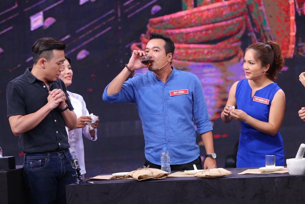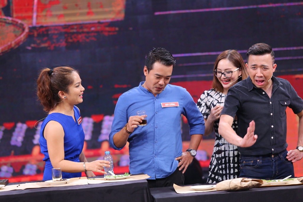 Tuy nhiên, họ đều bỏ cuộc để vợ chồng diễn viên Huy Cường - Hoàng Lan phải ăn hết 10 món như ca cao đắng, rau đắng, trà đắng, khổ qua rừng đắng, lá lằn đắng...