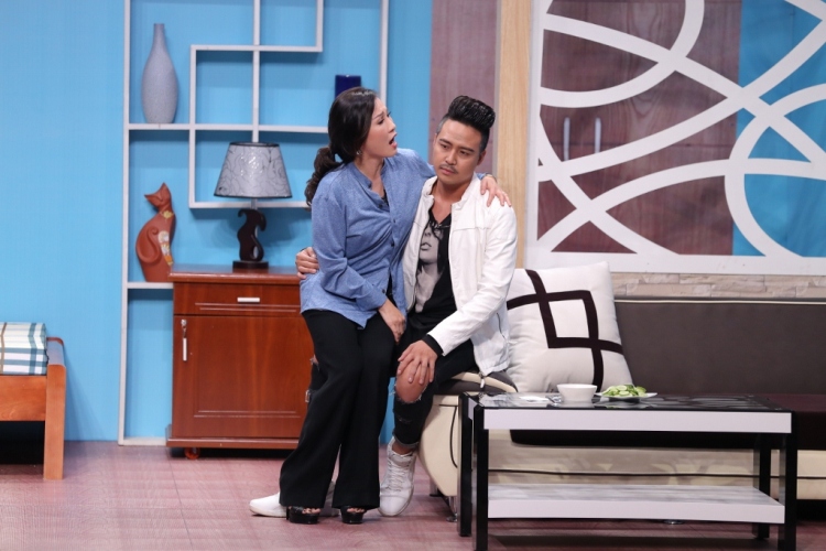 Mặc cho vợ ngồi ủng hộ trong hậu trường, Thanh Duy cưng nựng Hồng Đào vô cùng tự nhiên. Sự vồn vã của Thanh Duy khiến Hồng Đào ngỡ đây chính là diễn viên Quang Minh - chồng ngoài đời thật của mình. Thanh Duy tiếp lộ, mình đã cắt thủng 2 đầu gối quần để cảm thấy “đã” khi Hồng Đào ngồi vào lòng mình. Nam khách mời liên tục hôn lên má trưởng phòng Hồng Đào khiến chính cô cũng bị mất tập trung.