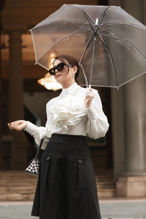 Sau thành công của hàng loạt dự án phim truyền hình, diễn viên Kha Ly gây chú ý khi tung bộ ảnh mới. Khác với hình ảnh nữ tính thường thấy, bà xã Thanh Duy khiến nhiều người không khỏi bất ngờ khi hoá thân thành một quý cô sang trọng, quý phái. Người đẹp diện thiết kế váy chéo vai với chi tiết nơ phồng, hay thiết kế sơ mi với điểm nhấn ở phần cổ đậm chất cổ điển. Diễn viên Cổng mặt trời kết hợp cùng kính đen, túi xách,... giúp hình ảnh trở nên ấn tượng hơn.