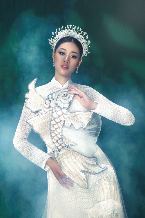 Hoa hậu Khánh Vân gây chú ý khi xuất hiện trong vai trò người mẫu, giới thiệu bộ sưu tập áo dài mới của nhà thiết kế Minh Châu. Vốn được biết đến với danh hiệu Người đẹp áo dài, mỹ nhân sinh năm 1995 khoe nhan sắc nền nã, cuốn hút trong loạt thiết kế vừa cổ điển, vừa hiện đại.