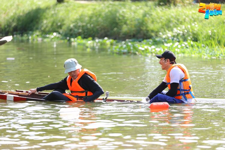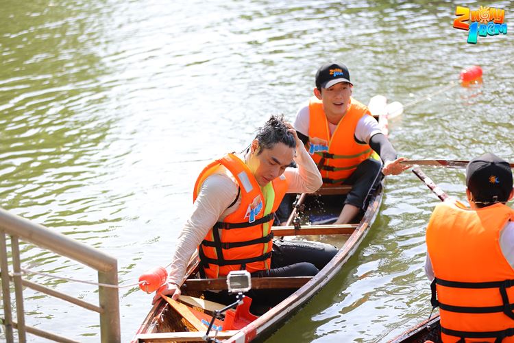 Bước vào thử thách đua thuyền tại cầu ngói Thanh Toàn, địa danh có kiến trúc “thượng gia, hạ kiều” tại làng Thanh Thủy Chánh – một ngôi làng được xây dựng từ thế kỷ 16. Tại đây dàn cast 2 Ngày 1 Đêm và 2 khách mời đã tham gia thử thách “đua ghe”. Dương Lâm – Song Luân đã rủ nhau về chung một đội “mình – tui”. Trường Giang – Ngô Kiến Huy tự tin lập thành đội. Cặp đôi không biết bơi Liên Bỉnh Phát – Kiều Minh Tuấn mạnh dạn về chung một ghe. Cris Phan – HIEUTHUHAI cặp đôi xác nhận vừa biết bơi, vừa biết chèo hứa hẹn sẽ về đích top đầu. Trước khi bắt đầu, Liên Bỉnh Phát đã đọc 2 câu thơ để mở đầu cho cuộc đua “ Nơi đây phong cảnh hữu tình – Thuyền ghe sẵn có chúng mình đi thôi!”, và ai trong dàn cast cũng công nhận là “quá hay”. Bà con xung quanh đã tụ tập đông đủ cổ vũ cho 8 người trong cuộc đua ghe “ngàn năm có một”. Ít phút sau sự bất ổn bắt đầu diễn ra với cuộc đua ghe này. Ngô Kiến Huy leo lên ghe và thả trôi ghe trên mặt nước, mặc cho Trường Giang liên tục la lớn: “Huy ơi chèo dô đây Huy ơi, quay đầu vô đây rước anh, Huy ơi! Em đi du lịch hả Huy?”. Cris Phan và HIEUTHUHAI vừa mới lên thuyền mà nước đã vào đầy ghe, nhưng nhanh chóng sau đó hai anh chàng đã ổn định được chỗ ngồi và tát nước ra khỏi thuyền. Chiếc thuyền của Kiều Minh Tuấn – Liên Bỉnh Phát có lẽ là bất ổn nhất vìnnước vào rất nhiều. Kiều Minh Tuấn liên tục lá lớn “A, nước dô nhiều hơn á, sao càng lúc càng vô vậy…Em nói nó kỳ lắm”. Và kết quả của sự kỳ cục đó là chiếc thuyền chìm xuống mương và hai người đàn ông “hơi nặng” cũng chìm theo mặc dù chưa xuất phát. Song Luân – Dương Lâm cũng chìm thuyền và vật vã với việc giữ thăng bằng và ổn định chiếc thuyềN. Sau gần 30ph toàn bộ dàn cast mới ổn định được và cuộc đua ghe câu mới bắt đầu diễn ra. Nhưng sau đó là màn gội đầu trên mương của Dương Lâm mặc cho Song Luân hùng hụt chèo. HIEUTHUHAI – Cris Phan sau nhiều màn đánh võng, lạng lách cũng đã ổn định được chiếc ghe và tìm ra hướng đi riêng. Đội Giang – Huy bất ngờ vượt lên dẫn đầu. Với sự cố gắng 3 chiến ghe: Giang – Huy, Cris – HIEUTHUHAI, Luân – Lâm đã lần lượt về đích. Nhưng chiếc ghê Tuấn – Phát…đã đâu mất hút. Chiếc ghe này đã lạng qua, lạng lại loay hoay tìm hướng đi. Khi 3 chiếc ghe kia đã lấy được cờ thì chiếc ghe Tuấn – Phát chỉ đi được nửa đường. Mặc dù “hơi chậm” nhưng chiếc ghe này vẫn vui vẻ vì cũng lấy được cờ và vẫn kiên nhẫn loay hoay tìm đường về. Dương Lâm báo cáo chiếc ghe Tuấn –Phát đã “đi đến sông Đồng Nai má em đang chờ”. Sau một hồi loạy hoay chèo ngược, chèo xuôi thì chiếc ghe này đã về được đến đích với thành tích 21 phút 45 giây. Kiều Minh Tuấn – Liên Bỉnh Phát đã có màn đăng quang “ngôi hậu” đua ghe đầy cảm xúc.