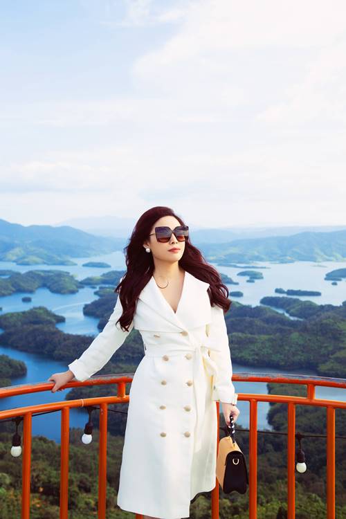 Để có thể ngắm nhìn và tận hưởng trọn vẹn nhất vẻ đẹp của hồ Tà Đùng, Kim Thanh Thảo cùng ekip đã tới đây vào đúng mùa "tích nước". Đây là thời điểm lý tưởng nhất, bởi giai đoạn từ tháng 7 cho tới tháng 12 là lúc mực nước tại hồ dâng cao. Điều này tạo nên khung cảnh một màu xanh thẳm xen lẫn xung quanh là những rừng cây um tùm xanh mát. Tất cả góp phần tạo nên vẻ đẹp cuốn hút cho những hòn đảo xinh tươi nằm gần hồ.