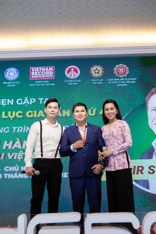 Ca sĩ Thanh Vinh - ông Dương Duy Lâm viên, Tổng thư ký Hội Kỷ lục gia Việt Nam - Kỷ lục gia - nhạc sĩ Thiện Hảo và ông Dương Duy Lâm viên, Tổng thư ký Hội Kỷ lục gia Việt Nam và ca sĩ Hồng Phượng