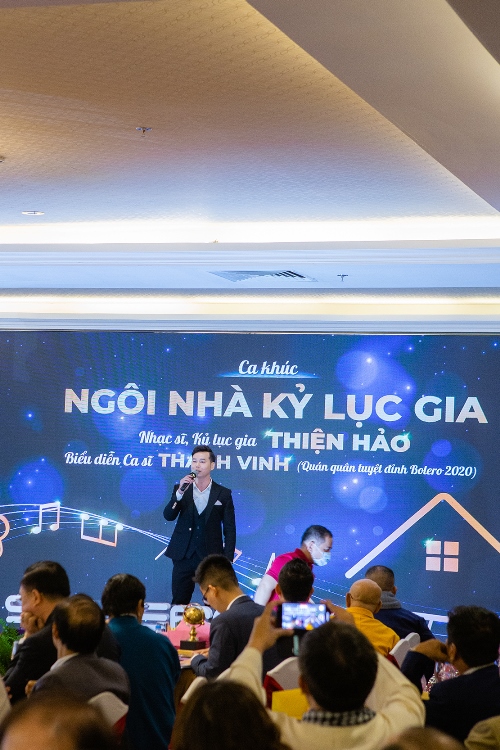 Ca khúc Ngôi nhà kỷ lục gia được trình bày qua giọng ca Thanh Vinh – Quán quân Tuyệt đỉnh Bolero 2020. Nam ca sĩ sở hữu chất giọng ấm áp, phong cách đĩnh đạc Thanh Vinh cũng là học trò đồng hành xuyên suốt với Kỉ lục gia - nhạc sĩ Thiện Hảo qua nhiều ca khúc Tiếng sáo đêm trăng, Thương khổ qua đèo, đã chia sẻ khi tham dự chương trình, anh nói: “ Tôi là vị học trò may mắn được thầy Kỉ lục gia- nhạc sĩ Thiện Hảo luôn ưu ái mời đồng hành khắp các chương trình của thầy. Trải qua những chuyến đồng hành tôi thầm cảm phục tài năng của Thầy với sức sáng tạo không mệt mỏi luôn hết lòng vì nghệ thuật. Và lòng đam mê cống hiến của Thầy đã được ghi nhận, gặt hái thêm thành công với Bằng kỷ lục: Sống bằng sáng tạo. Tôi vinh dự chia sẻ niềm vui cùng Thầy khi hát trong ngày thầy vinh danh với ca khúc Ngôi nhà kỷ lục gia. Kính chúc Thầy sẽ luôn phát triển gặt hái thêm nhiều thành tựu lớn và sự nghiệp thăng hoa hơn nữa!”