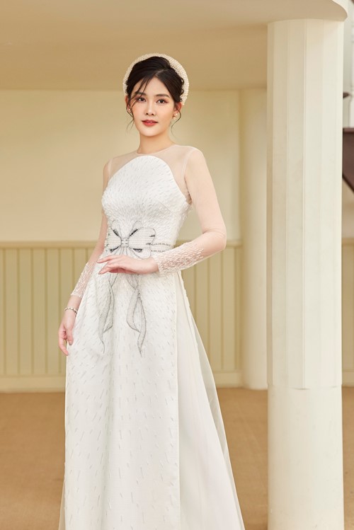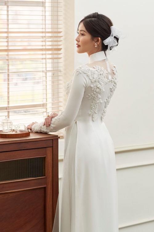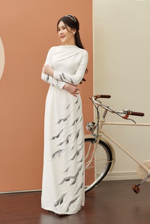 “Trong quá trình làm việc, lắng nghe những chia sẻ, tâm huyết của anh Minh Châu về áo dài, Ngân Anh càng thêm trân trọng các thiết kế mà anh mang đến. Để có được một thiết kế độc đáo, phù hợp với người trẻ là cả quá trình tìm tòi, sáng tạo không ngừng của nhà thiết kế. Do đó, Ngân Anh thấy mình thêm yêu và mong muốn lan toả áo dài đến với mọi người”, cô nói. Đồng thời, người đẹp quê Tiền Giang tâm sự thêm trong công việc giảng dạy, áo dài sẽ là lựa chọn không thể tốt hơn để cô tự tin khi đứng trên bục giảng.