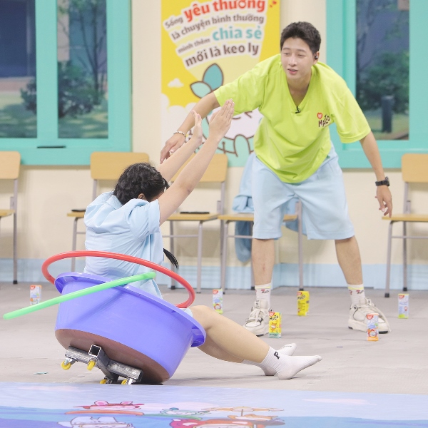 Đức Anh vừa nói dứt câu đã thấy Cody nhiệt tình đấm bóp vai cho bạn học mới, Tùng Maru cũng chăm chỉ bóp chân, Luna nhanh chóng chạy đi lấy cho chàng trai giàu có này một hộp sữa mới, còn Lê Đức và Vũ Thịnh phối hợp nhịp nhàng, người lấy ô che cho Đức Anh, người đứng xịt nước tạo mưa khiến khán giả phì cười với chiêu trò của dàn học sinh này. Không chỉ thế, trong lúc thực hiện thử thách mà chương trình đưa ra, Đức Anh liên tục dùng tiền để “mua chuộc” đối thủ, đề nghị đội bạn làm sai thử thách hoặc chơi dở sẽ được anh chàng cho 100 ngàn đồng. Là người dễ bị dụ, Lê Đức lập tức làm theo yêu cầu để được nhận tiền và kết quả bị đồng đội mắng xối xả.