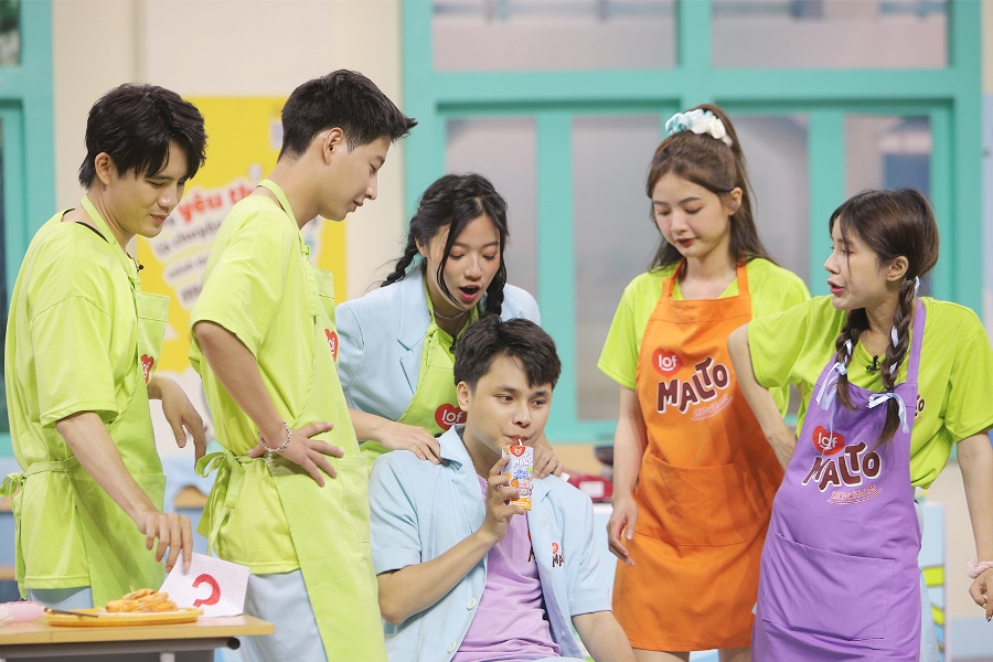 Đến thử thách chế biến món bánh tráng “siêu to khổng lồ”, lớp học đã mời đến hot TikToker Hải Vót để “cầm cân nảy mực” cho nhiệm vụ này. Thấy nam “giám khảo” vừa xuất hiện, Luna và Fanny liền bật mood dễ thương, nói giọng nhí nhảnh đáng yêu để lấy lòng. Thấy vậy, Lan Hương liền lên tiếng “cà khịa” hai cô bạn mình cứ thấy Hải Vót là giọng lại biến đổi. Tuy nhiên, khi anh chàng qua chỗ mình làm thì Lan Hương cũng không khác là mấy, cô nàng liên tục nói lời nhớ nhung, bắn tim lia lịa. Hải Vót cũng đáp lại tình cảm của Lan Hương, anh “dí” theo để bắn tim cho cô nàng tới cùng. Thấy vậy, Lan Hương “quay xe”: “Thôi được rồi, đủ rồi anh ơi. Mình có giới hạn thôi” khiến khán giả phì cười.
