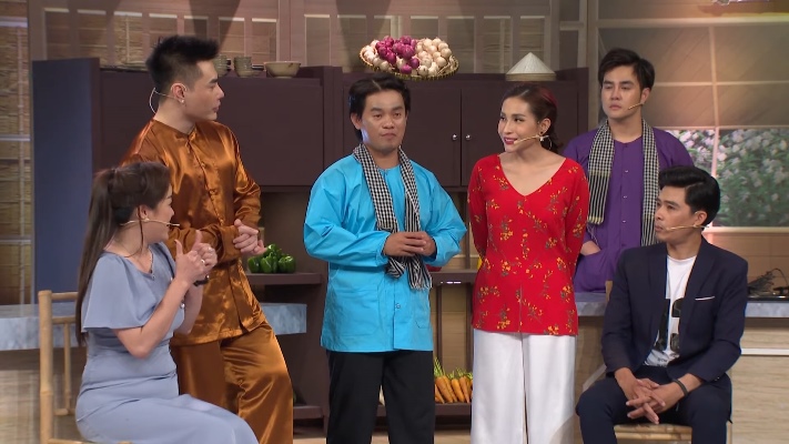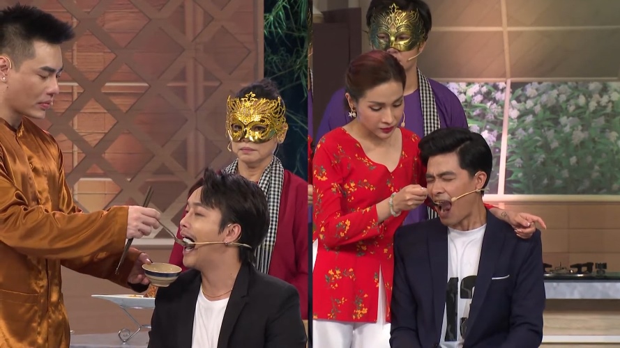 Chủ nhân món canh chua ba khía - đầu bếp số 3 khiến mọi người giật mình khi hét lớn: “Bé Lộc, em nhớ ngày xưa anh yêu em, anh nấu món ăn cho em mà lúc đó anh nấu không có ngon. Lúc đó em làm ca sĩ em học mệt quá, anh nấu cho em ăn mà em chê anh nên anh mới chạy về mách mẹ. Mẹ em tức quá đi đường quyền em cái, cho em số tiền học đầu bếp và giờ em chính là siêu bếp”. Không thua kém, đầu bếp số 4 thể hiện năng khiếu hát trước khi giới thiệu món ba khía trộn chua cay.