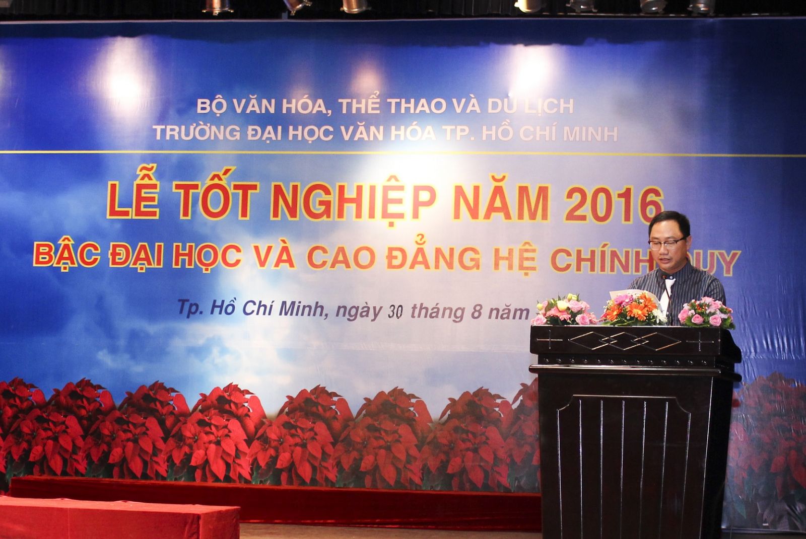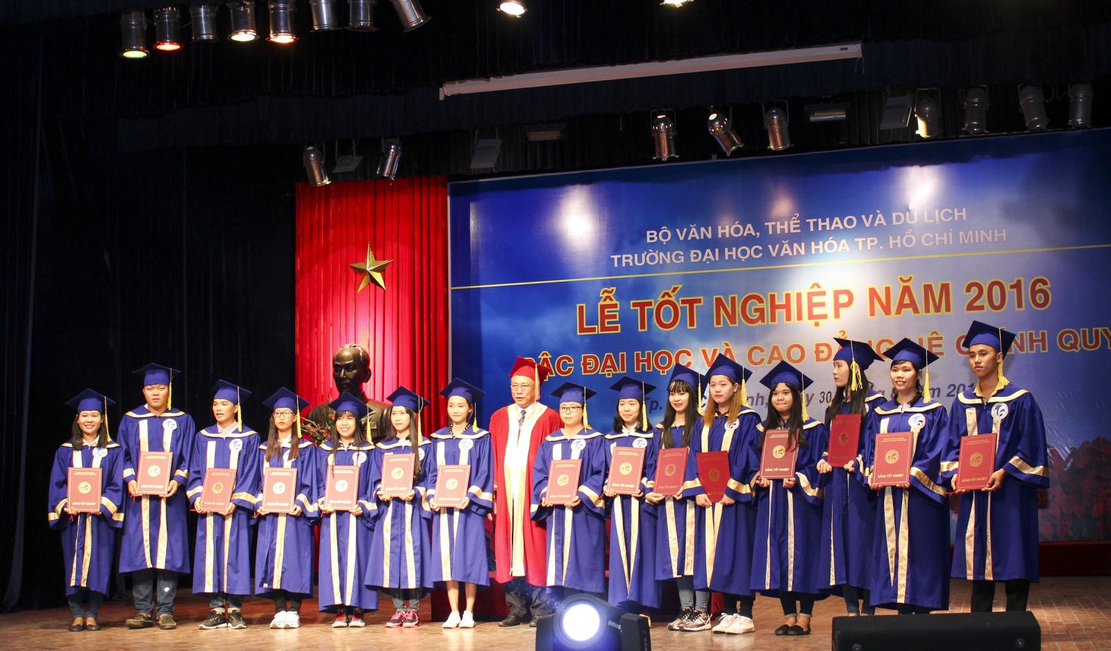 Sáng ngày 30.8 Khoa Quản lý văn hóa, nghệ thuật trường đại học Văn Hóa TPHCM đã tổ chức Lễ trao bằng tốt nghiệp cho các sinh viên các lớp đại học, cao đẳng chính quy khóa học 2012 – 2016, 2013 - 2016 và sinh viên các khóa trước đã thi và làm khóa luận tốt nghiệp, hoàn thành xong chương trình đào tạo.