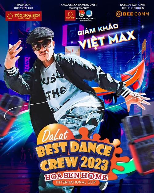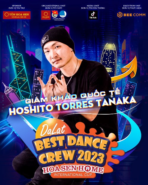 Đặc biệt, ngoài hai giám khảo đồng hành cùng chương trình từ mùa đầu tiên là giám khảo Việt Max và giám khảo Viết Thành, Dalat Best Dance Crew 2023 – Hoa Sen Home International Cup còn chào đón sự góp mặt của giám khảo cực “chất” là Hoshito Torres Tanaka và Alex The Cage.