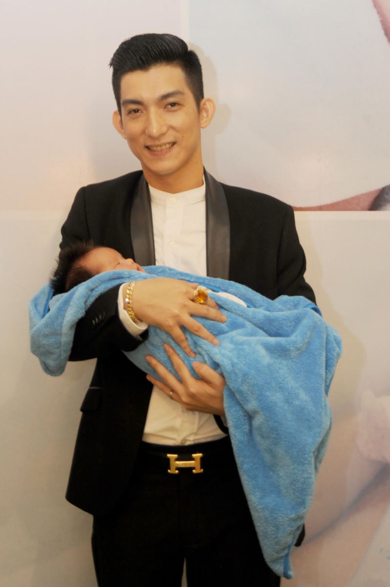 Bảo Duy hạnh phúc ôm quý tử khoe với mọi người