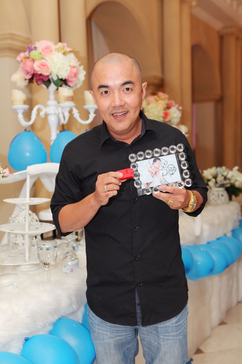 Ngoài vai trò MC, biên tập văn nghệ cho buổi tiệc, ca sĩ Đoan Trường cũng nhận bé Tấn Đức làm con trai đỡ đầu.