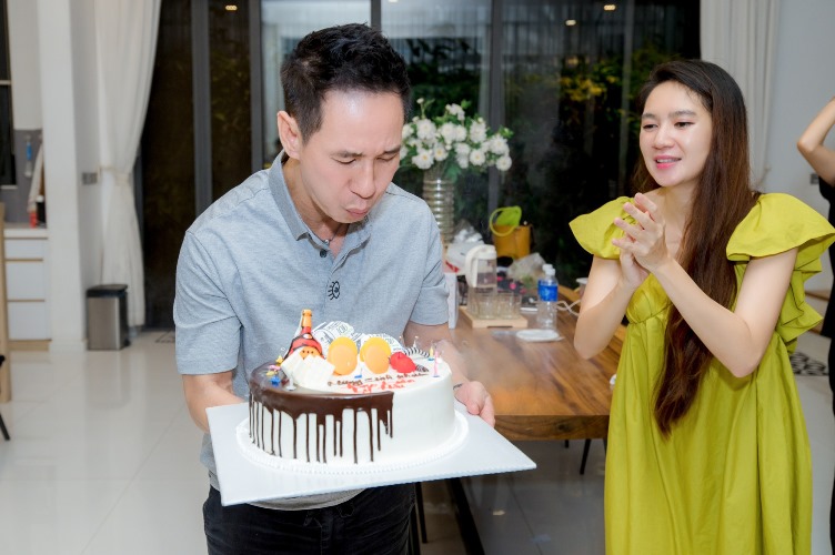 Nam đạo diễn được bà xã, các con và các diễn viên tổ chức buổi tiệc đón tuổi mới ấm cúng tại TP.HCM.