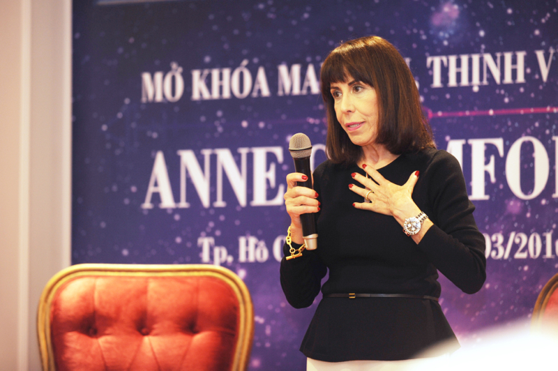 Trong chuyến thăm Việt Nam lần này, cô Anne còn kết hợp ra mắt quyển sách nổi tiếng thế giới bằng tiếng Việt mà bà là tác giả trong chương trình: Mở khóa may mắn, thịnh vượng cùng Anna Cham Fort do Công ty TNHH Home Shopping hợp tác tổ chức.