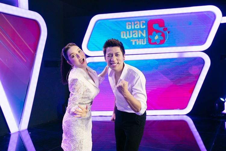 Lý Nhã Kỳ cũng khá thân thiết với Duy Ngọc nên không ngần ngại sờ bụng, khen ngợi thân hình 6 múi cực chuẩn của nam ca sĩ. Tuy nhiên, Lý Nhã Kỳ cho hay gu bạn trai của cô không cần phải 6 múi, một múi cũng đủ rồi. “Chị cũng không hiểu vì sao chị lại bắt người ta đi tập cho được 6 múi trong khi gu chị chỉ có một múi thôi. Ai cũng tưởng chị chơi với cỡ doanh nhân, tổng thống đúng không? Nhưng không, chị chỉ chơi với kiểu 6 múi như này thôi”, nữ diễn viên hài hước.